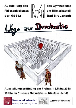 Ausgehend von dieser Beobachtungen haben es sich die SchülerInnen des Philosophie-Kurses der MSS12 zur Aufgabe gemacht, Wege der Demokratie damals, heute und in Zukunft zu erkunden: Was macht das Wesen der Demokratie aus? Welche Grenzen und Gefährdungen hat sie? Welche Entwicklungen durchlaufen demokratische Vorstellungen? Woran bemisst sich das Gelingen demokratischer Systeme? - Dies sind nur einige der Fragen, welchen sich die Gruppe im Rahmen eines Workshops an der Kueser Akademie für Europäische Geistesgeschichte gewidmet hat.