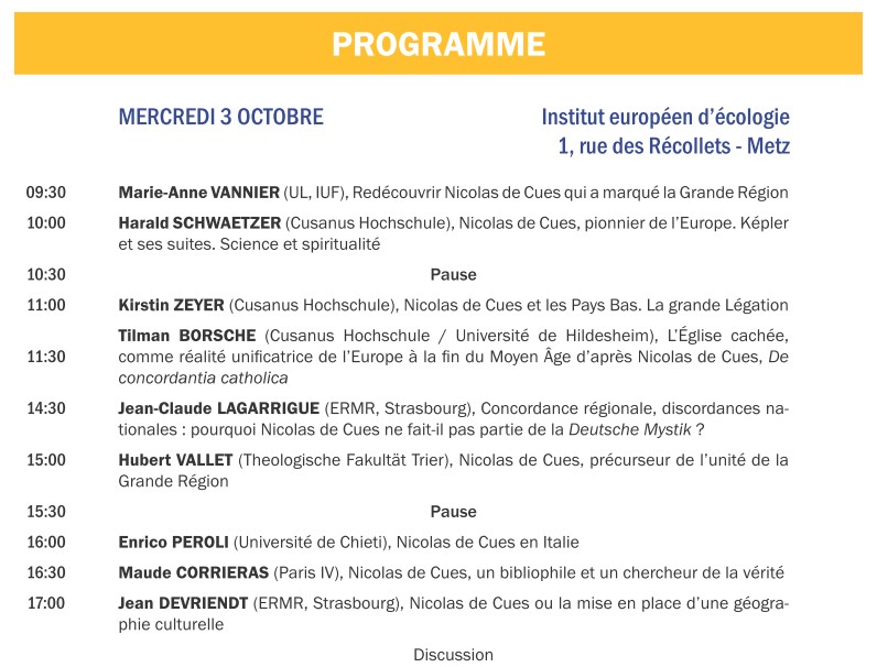 Organisation: Marie-Anne Vannier (Metz), Jean Ehret (Luxemburg), Harald Schwaetzer (Bernkastel-Kues)