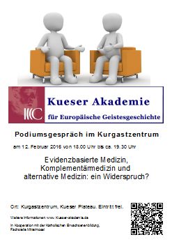 Auf dem Podium sind: * PD Dr. med. Jutta Hübner (Deutsche Krebsgesellschaft) * Irmgard Kessler-Rieder(Onkologische Schwerpunktspraxis am Krankenhaus, Bernkastel-Kues) * Dr. med. Dieter Helling (Facharzt für Allgemeinmedizin, Psychotherapie, Naturheilverfahren, Homöopathie; Koblenz) * Dipl.-Ing Heike Katzmarzik (Medizinjournalistin) * Dr. Nadja Primc, Institut für Geschichte und Ethik der Medizin der Universität Heidelberg. Moderation: * Dr. rer.nat. Thomas Gronau (Tumorbiologe; Deutsche Krebsgesellschaft; Mitglied weiterer Vereinigungen für Palliativmedizin, komplementäre und alternative Ansätze) * Dr. phil. Matthias Vollet (Geschäftsführer der Kueser Akademie für Europäische Geistesgeschichte)