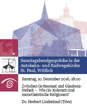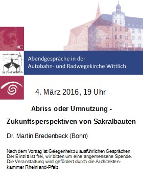 Eine gemeinsame Veranstaltung des Fördervereins Autobahnkirche St. Paul Wittlich, der Kueser Akademie für Europäische Geistesgeschichte und der Katholischen Erwachsenenbildung im Dekanat Wittlich.
