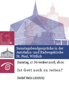 Eine gemeinsame Veranstaltung des Fördervereins Autobahnkirche St. Paul Wittlich e.V. in Verbindung mit der Kueser Akademie für Europäische Geistesgeschichte, der Katholischen Erwachsenenbildung Mittelmosel und in Kooperation mit dem Trierer Theologischen Quartett. Kooperationspartnerin ist die Leserinitiative Publik-Forum. Wittlich.