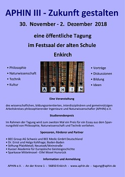 Eine Veranstaltung des wissenschaftlichen, bildungsorientierten, interdisziplinären und gemeinnützigen Arbeitskreises philosophierender Ingenieure und Naturwissenschaftler (APHIN) e.V. in Verbindung mit der Kueser Akademie.